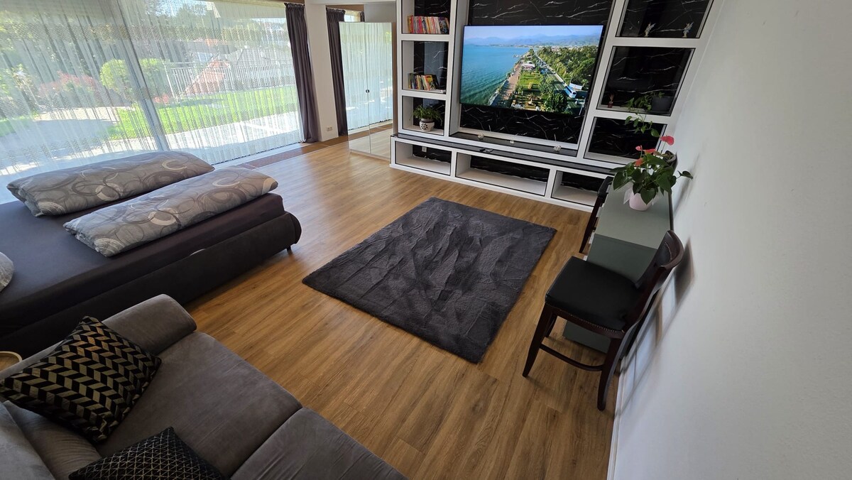 Willkommen in Ihrem Zuhause auf Zeit! Die helle Wohnung bietet ein gemütliches Doppelbett, ein zusätzliches Sofa und viel Platz zum Entspannen. Große Fenster schaffen eine freundliche Atmosphäre, während WLAN und TV für Unterhaltung sorgen. Am Esstisch können Sie sowohl arbeiten als auch gemeinsam essen. Das moderne Bad mit Dusche rundet den Komfort ab. Ideal für eine entspannte Auszeit oder einen angenehmen Geschäftsaufenthalt.