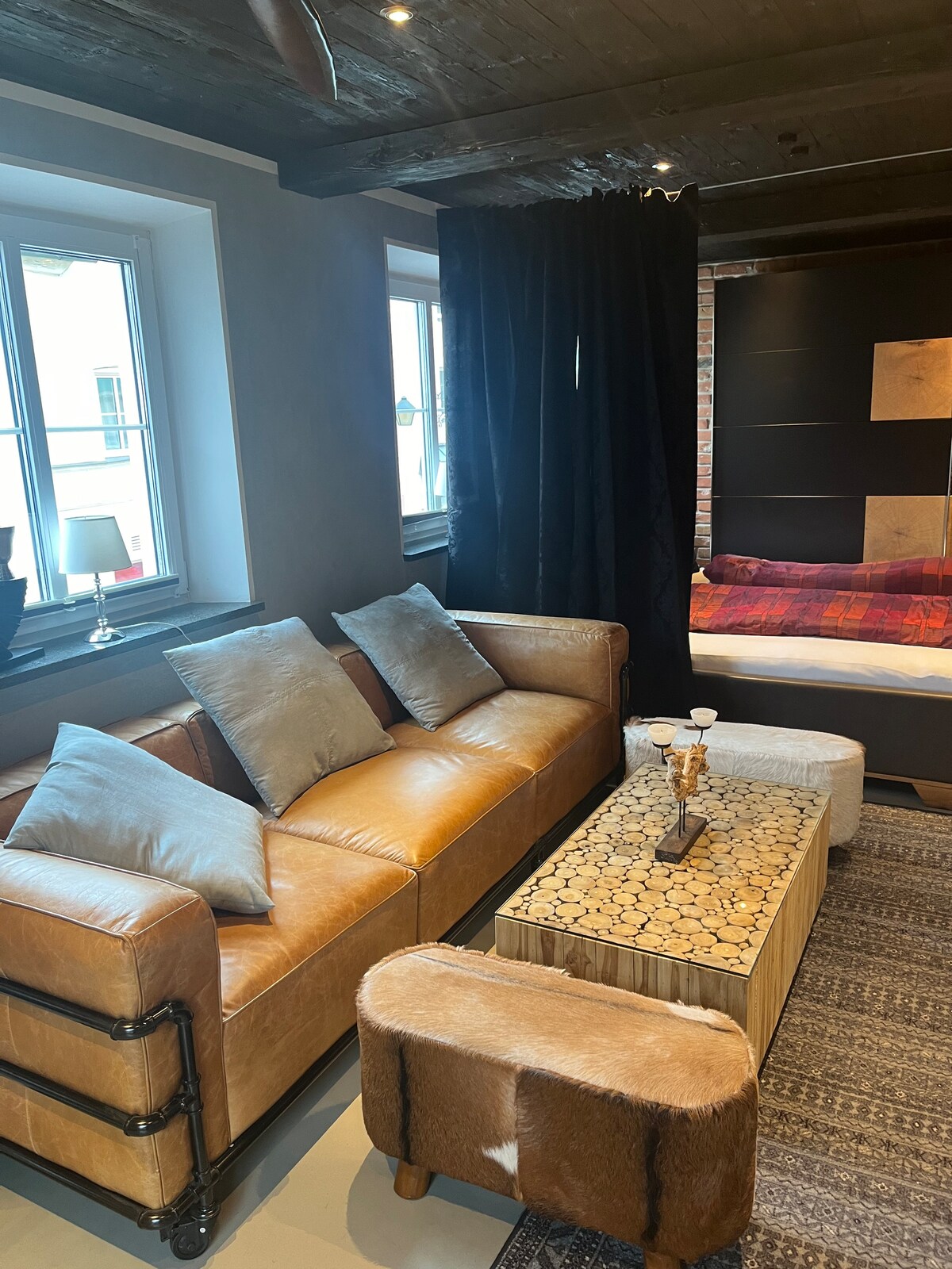 Genieße ein paar schöne Tage in unserer Panoramasuite mit Balkon im ersten Stock direkt am Ufer des Forggensees mit einzigartigem Blick auf den See, die Allgäuer Berge und die Königsschlösser. Das Schlafzimmer ist ein abgetrennter Raum . Im Wohnbereich befindet sich zustätzlich noch ein Schlafsofa welches ausgezogen werden kann und somit Platz für 2 weitere Gäste (nur gegen Aufpreis) bietet. Spielplatz und Spieleraum im Hotel vorhanden. Tiere sind nicht gestattet.