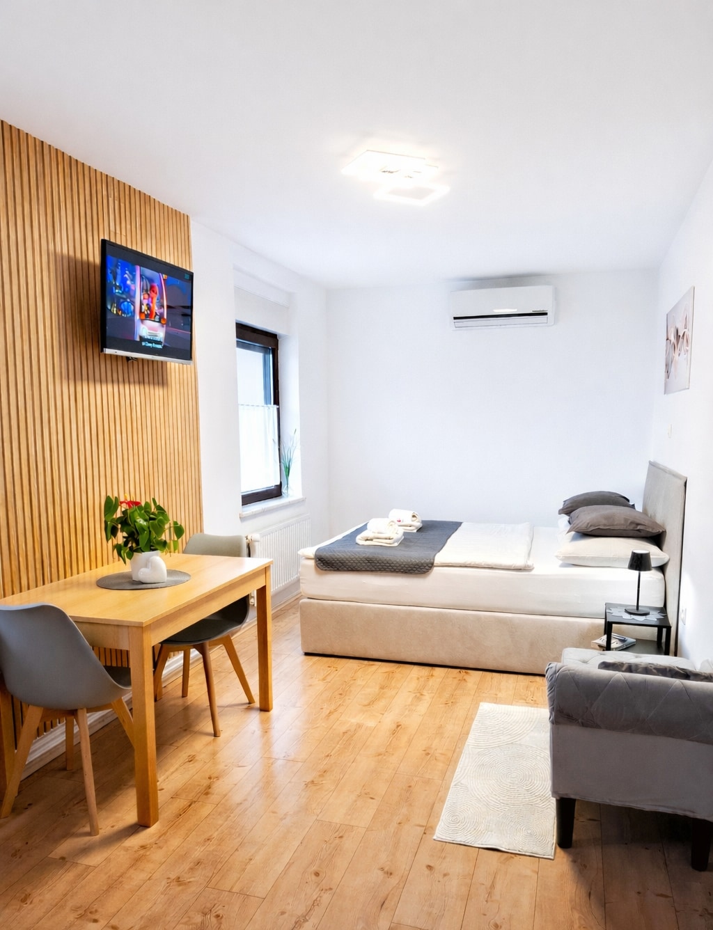 Have you long dreamed of a change of scenery, relaxing, enjoying every moment? In our apartment you can hear the silence of the Alpine mountains and the wonderful singing of a mountain stream right from your bedroom window. Picturesque sunrises and sunsets will definitely not leave anyone indifferent. Directly from us there is a path up the mountain, where you can admire the beauty from above, sitting on a bench. We are located 2 km from Lake Bled and 15 minutes from Lake Bohinj.