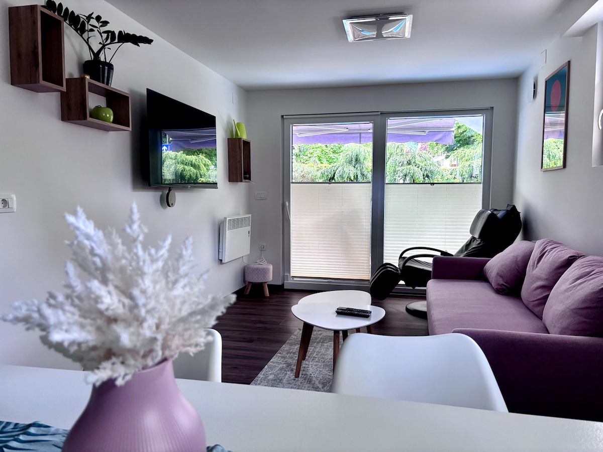 Aqua Suite Bled is your private wellness cottage with a seasonal heated pool (May–October) and a private outdoor jacuzzi available all year, offering complete privacy. Enjoy a modern, elegantly furnished apartment with stylish details, a private entrance, and a terrace. A welcome package with sparkling wine and chocolates awaits you upon arrival. Just a few minutes’ walk from Lake Bled and the town center – ideal for a romantic getaway or special occasion.