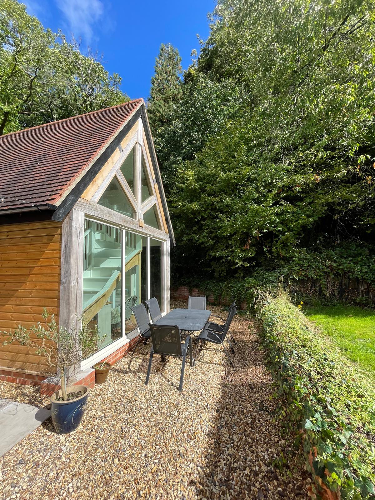 Enjoying spectacular views this 2 bedroom, dog friendly lodge sits on the top of Leckhampton Hill, enjoying easy access to the famous ‘Cotswold Way’ walk and is a 5 minute drive from the town centre of regency Cheltenham. The Lodge also includes a 3.5m outdoor kitchen looking over The Malvern Hills. The kitchen includes a large built in BBQ, a pizza oven and sink.