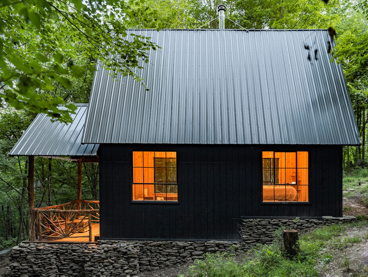 Nestled in the Catskills Forest, less than 2 hrs from NYC, you'll find Birch Ridge A-frame! This gorgeous 2-bedroom cabin is set on 7 private acres with hiking areas and a seasonal stream. Enjoy the wall of windows that creates a magical stay with breathtaking views. This is the perfect place to relax, sit in the barrel sauna, hike through the private forest, roast marshmallows over the fire, and soak up the sounds of nature. A space that’s made for creating memories that will last a lifetime!