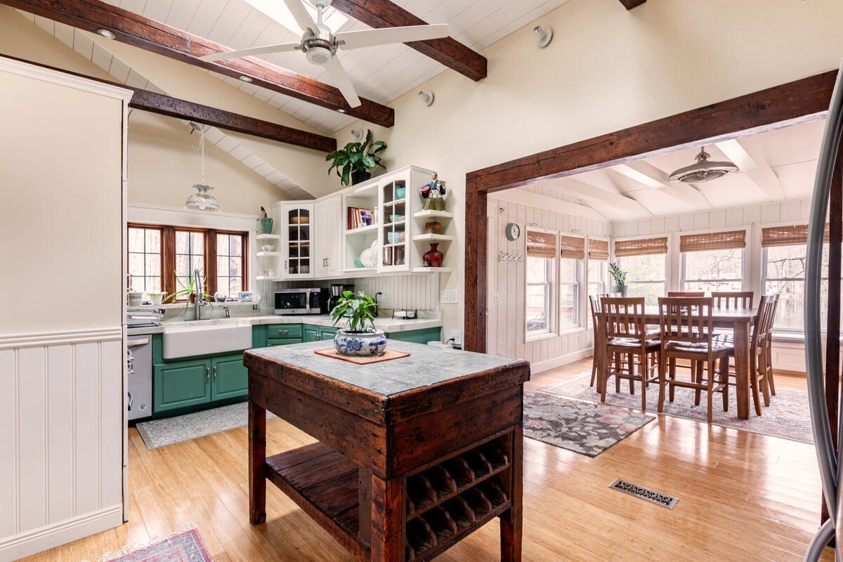 Step into history inside our freshly renovated 1800s school house home. Relax and take it easy on the expansive front porch, with sweeping views of rural farmland and a historic cemetery next door. Sit by the fire and enjoy a book or beverage with friends and family and cook a nice farmhouse meal. This unique and tranquil getaway won't disappoint. And it's just 4 minutes from Narrowsburg's Main Street. Swimming holes and hiking trails along the Delaware River are just a stone's throw away.