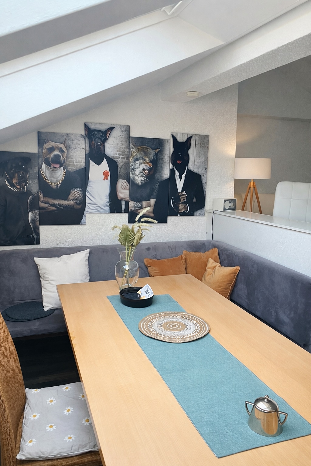 Möchtest Du deinen Partner und deine Freunde mit etwas Besonderem überraschen bzw. suchst Du einen außergewöhnlichen Ort für eine Auszeit zu viert? Wir haben jeden Raum individuell und außergewöhnlich gestaltet. Es gibt 2 Schlafzimmer, eine Küche, eine Dusche und ein separates WC. Auf unserer Terrasse kannst du gemütlich frühstücken oder grillen. Neben dem kostenfreien WLAN gibt es einen TV, viele Rad- und Wanderwege sowie gekühlte Getränke und regionale Lebensmittel aus unserer Minibar.