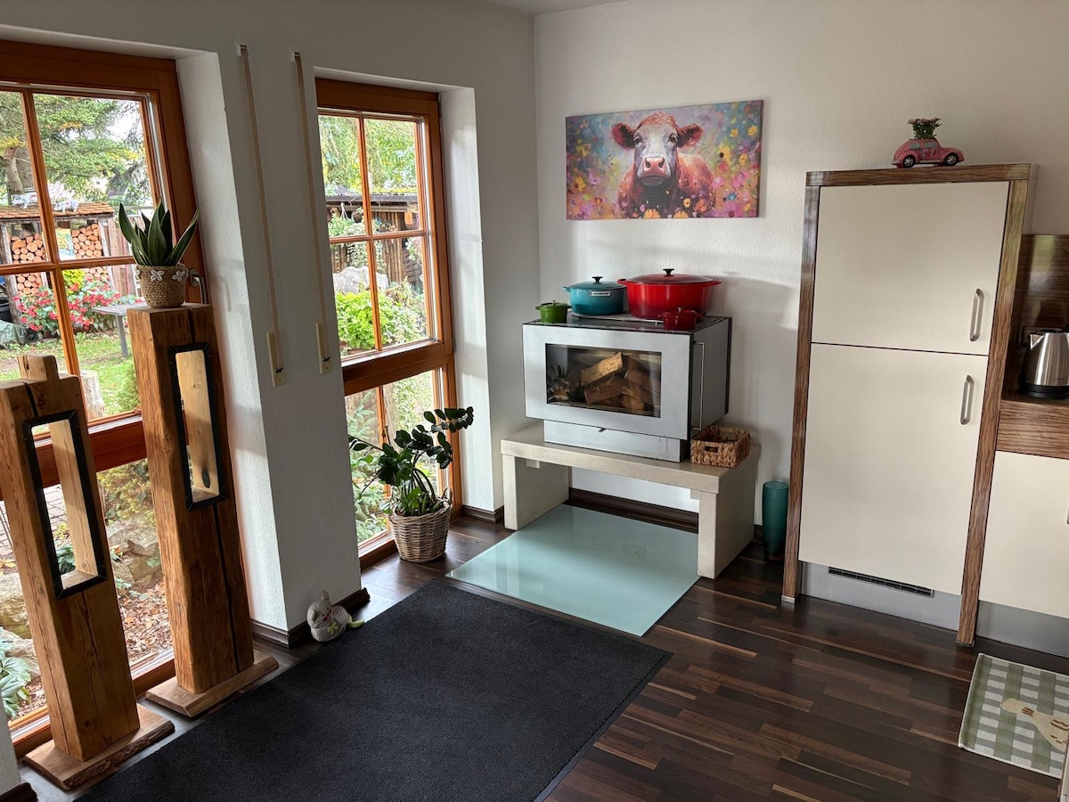 Ruhige Ferienwohnung, umgeben von Wald und Wiese am so genannten Weinberg. Trotzdem Zentral gelegen, nach Nürnberg 30 km, Erlangen 15 km, Bamberg 20 km und nach Forchheim sind es 6 km mit seiner Historischen Altstadt, der Kaiserpfalz und dem Kellerwald mit dem Legendären Annafest.