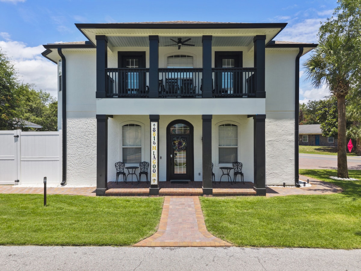 🌴 CASA 🌴 TROPICAL 🌴 Stay in a tropical paradise!! ⭐️ designer decorated rooms 🌴 lush landscaping 💦 private colorchanging pool 🍊 pick-your-own citrus trees (seasonal) 🥘 custom stone grill 🔥 two fire pits 🎲 gameroom with ping-pong table, foosball table, board games 🛌 13 people 🏖 7 min drive to the white sand beaches 15 min drive to Pier Park 10 min drive to Shipwreck water park 2 min drive to Publix Sportcomplex Close to the best area restaurants