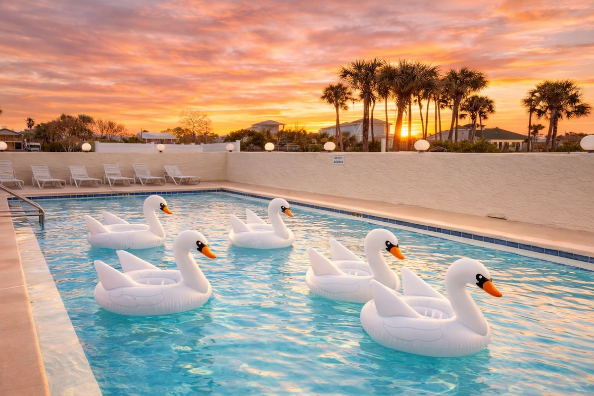 家庭春季度假胜地 · 距离海滩1个街区 · 泳池