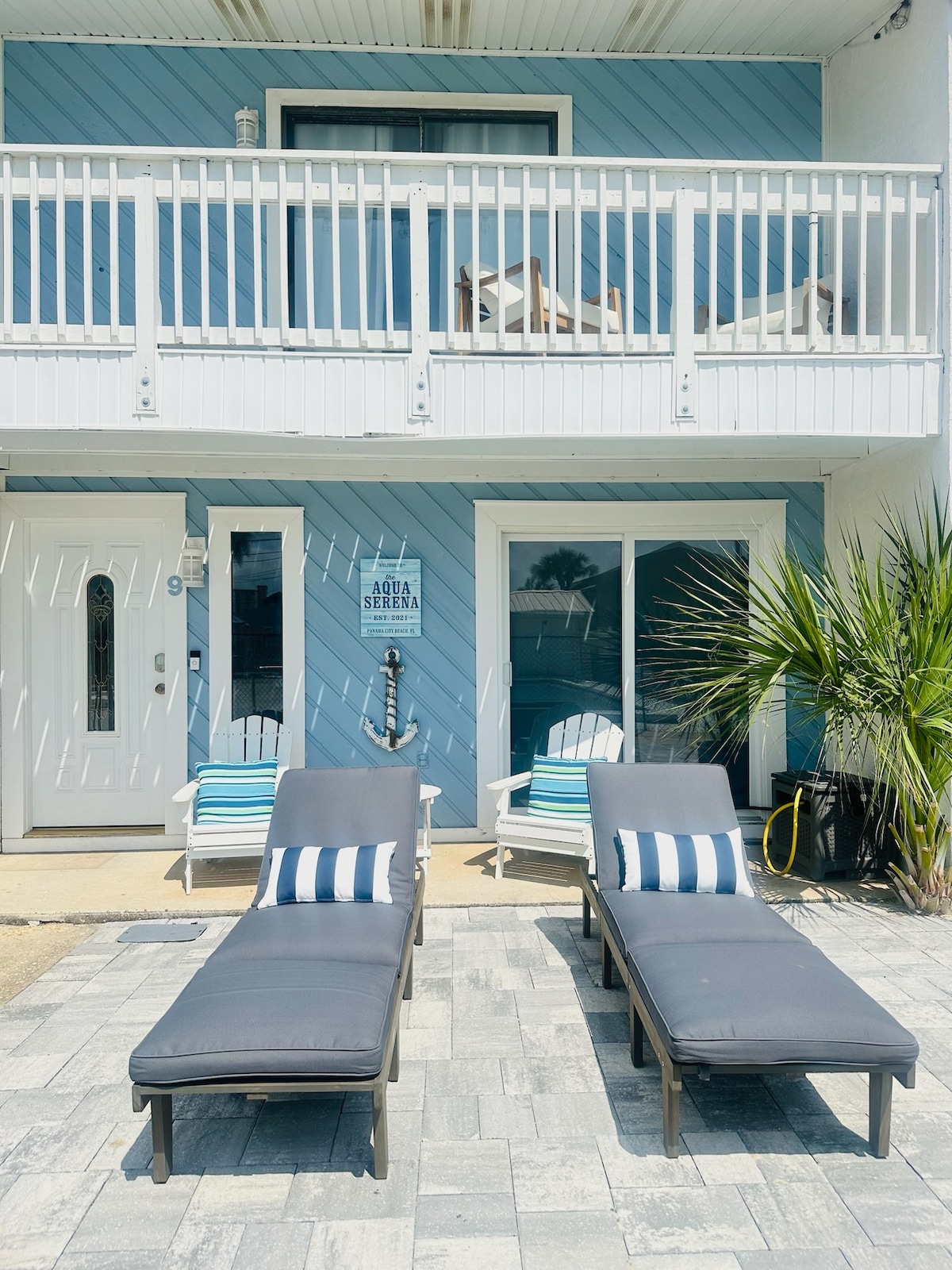Escape to our cozy beachside townhome! You will love the quiet location steps from white sand beaches and clear blue water. Private & public beach access are right across the quiet street and you'll enjoy a private community pool, fast WiFi, Smart TVs, and washer/dryer combo. Our quiet neighborhood is minutes away from restaurants, putt putt, the zoo, state park, and many other family attractions. It is literally a 1-minute walk from the front door to sand!