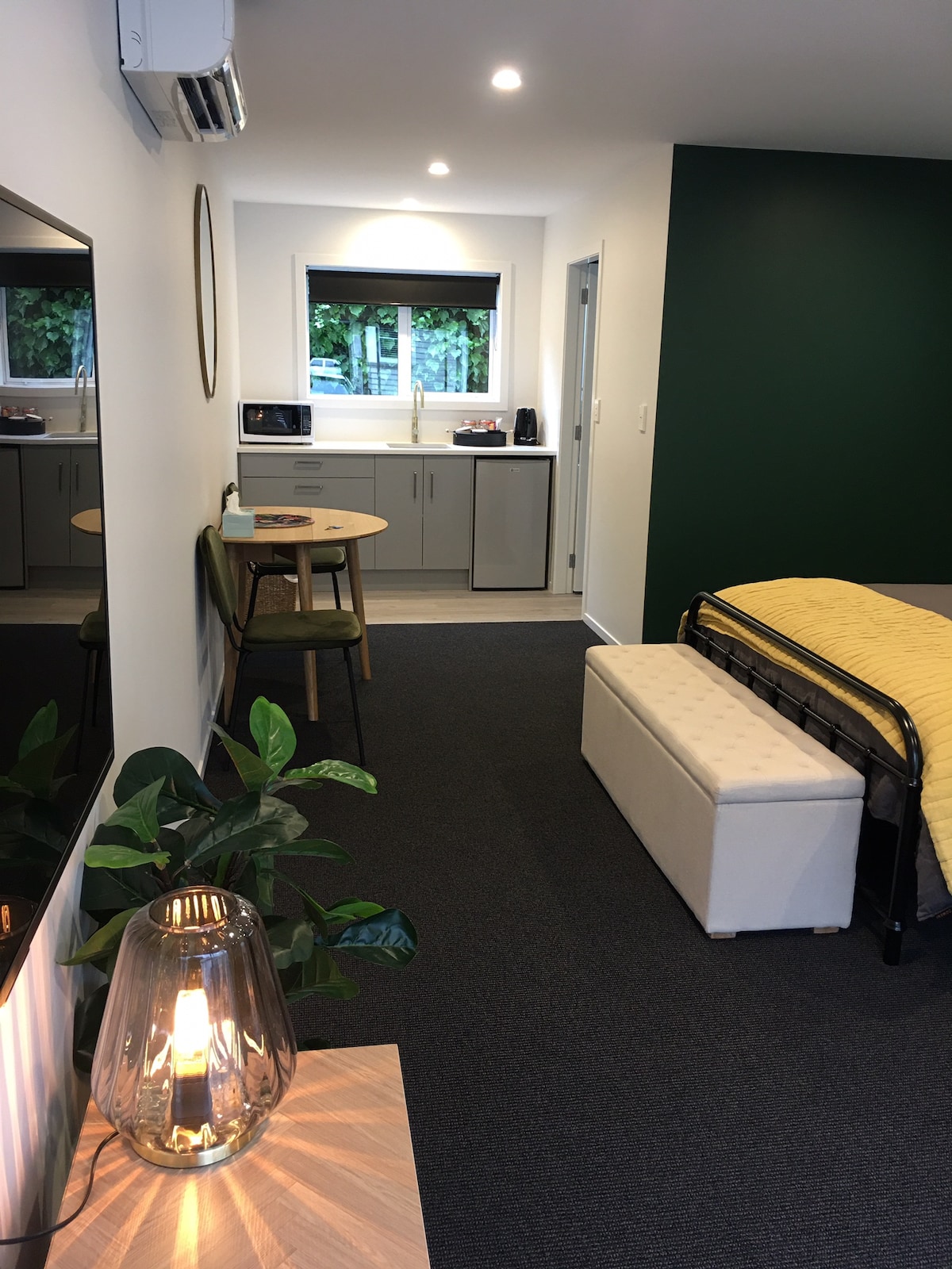 Kick back and relax in this calm, stylish space, set back from the road this studio is very private & has everything you need. Whether it’s a convenient overnighter or an extended stay, our studio is ideal, with a short drive to Queensgate & Central Hutt or a short walk to the public train into Wellington city. Past guests have enjoyed the convenience of ample off street parking onsite. With Te Whiti park directly across the road, there are plenty of beautiful walks & fitness options too.