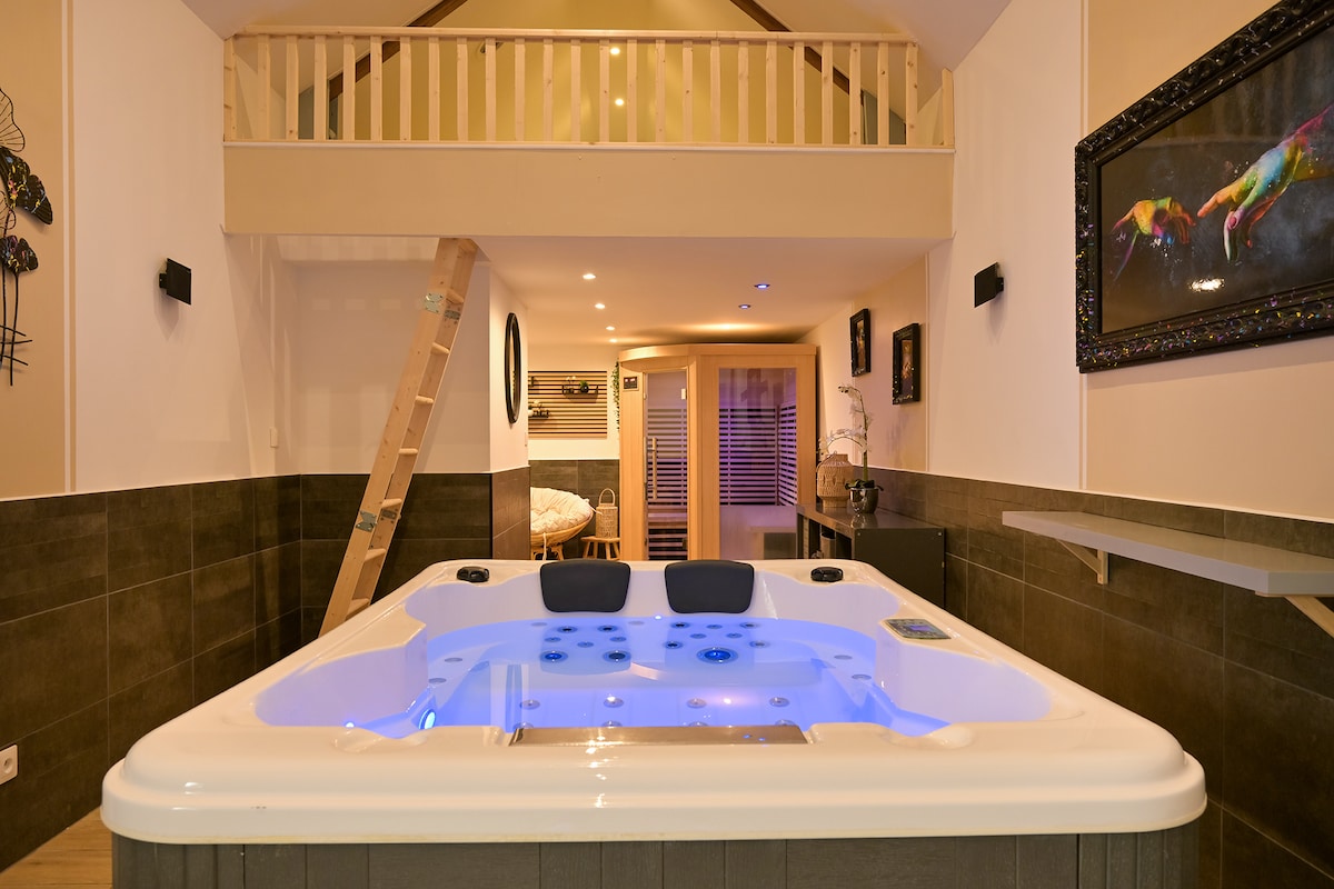 ✨Envie de vivre un Moment Magique en Amoureux ou entre Amis ?❤️ Offrez-vous une parenthèse hors du temps dans un Grand Spa privatif à l’ambiance romantique sous le Ciel Étoilé, véritable invitation au voyage sous les tropiques🌴 💦Détendez-vous dans l'Espace Bien-Être exceptionnel avec • Spa XXL • Sauna • Smart TV 🌿Situé à l’intérieur avec vue sur le jardin, profitez d’un séjour inoubliable été comme hiver 🏡Le Lodge & Sweety❤️Spa, magnifique maison en pierres nichée au calme de la campagne