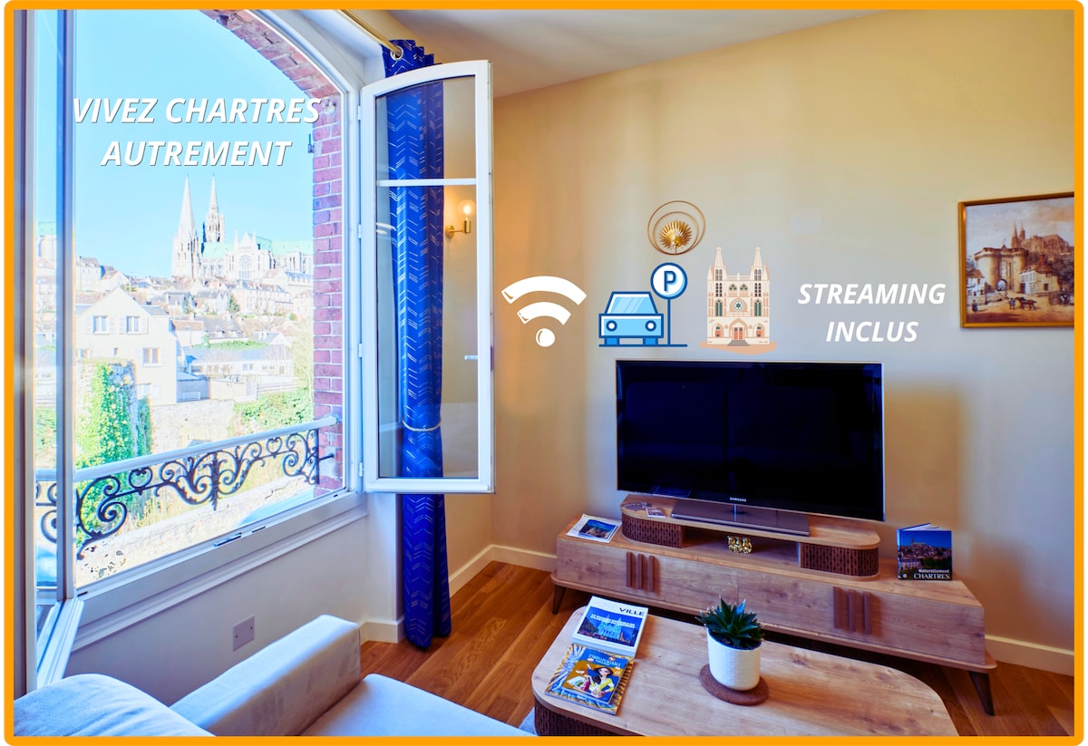 Bienvenue à La Porte Enchantée, un appartement lumineux au cœur du centre historique de Chartres. Vous profitez d’un lieu calme et confortable, soigneusement décoré. Depuis le salon, la vue sur les toits de la ville et la cathédrale offre un cadre apaisant, idéal pour se détendre ou travailler. Situé à Porte Guillaume, l’appartement permet de rejoindre l’hyper-centre à pied en quelques minutes. Des navettes gratuites au pied de l’immeuble facilitent l’accès à la gare et au centre-ville.