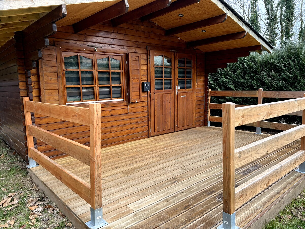 - Le Chalet Insolite en bois typique Équipé d'une kitchenette ( sauf four et lave vaisselle ) Le petit déjeuner est inclus - Coin repas , tv , wifi, Netflix et lecteur dvd - Lit 160x200 , salle de bain et wc Terrasse extérieur éclairé avec jacuzzi ( peignoirs ,serviettes et chaussons jetables fournis) - 2 chalets sont installés sur ce même terrain mais totalement indépendants . Jardin clos et privé pour le stationnement sous caméra vidéo surveillance pour votre sécurité * Animaux non admis