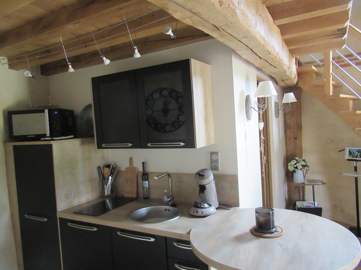 Charmant four à pain ancien en colombages, situé en bord de ruisseau il se compose de : - Salon avec un poêle à bois, - Cuisine, - A l’étage : -salle de douche/WC accessible par une échelle de meunier (voir photos), -chambre avec un lit 160x200 avec vue sur le ruisseau, accessible par une échelle de meunier (voir photos), Chambre et salle de bain ne communiquent pas. Salon de jardin, BBQ, parking privé, bois de chauffage inclus Note autre gite, la Maison de pierres, est à 100m