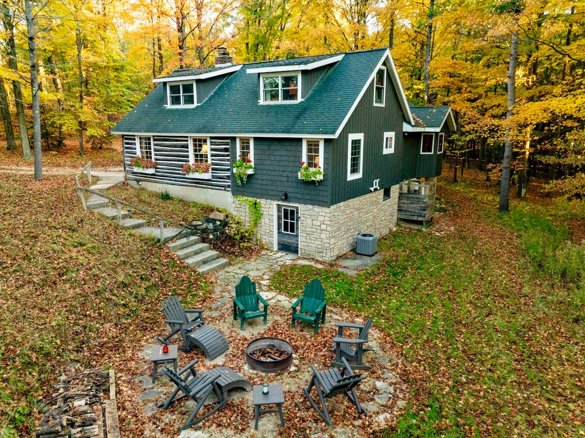全新装修的 Manistique 原木小屋,带院子和火坑