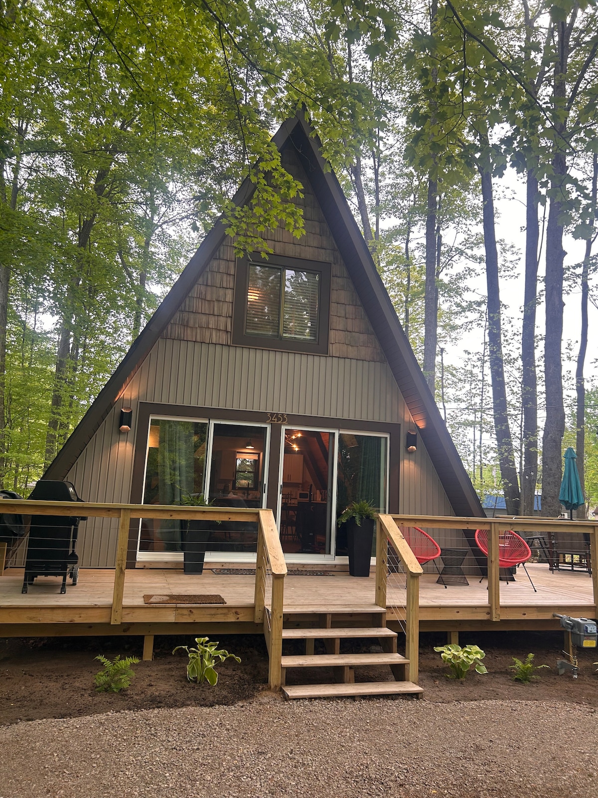 Cozy A-frame perfectly located minutes from downtown Harbor Springs. Nestled in the trees across from a nature preserve so you get that “cabin-in-the-woods” feel while being close to everything the area has to offer. Perfect homebase for “Up North” adventuring: •5 min from downtown Harbor Springs •20 min from Petoskey •40 min to Mackinaw •10 min to Nubs Nob/Highlands •5 min to Tunnel of Trees M-119 Home Features: •2 bdrms w queen beds •Indoor & Outdoor firepit •Stocked kitchen •Front/back deck