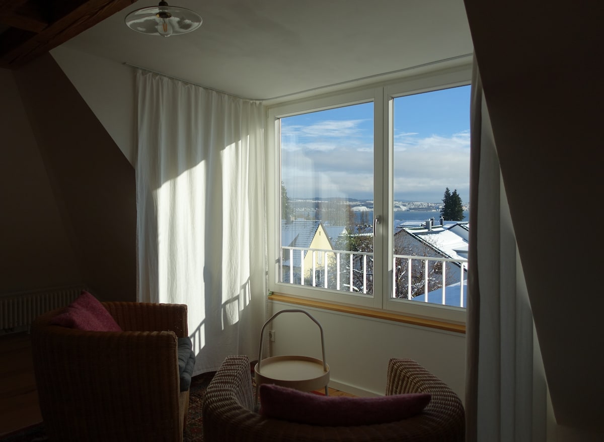 Hier thront Ihr hoch oben über allem mit einer herrlichen Sicht über den See bis zu den Alpen. Sehr romantisch. Es ist ein prima Ausgangspunkt für Ausflüge nach Konstanz oder in die wunderschöne Umgebung. Auch im Herbst und Winter! Zum See und sind es nur ein paar Minuten den Berg hinunter. Hier könnt Ihr mit der Fähre nach Meersburg übersetzen - und auch die Insel Mainau ist nicht weit. In die Altstadt führt entweder ein wunderschöner langer Uferweg oder ein direkter Bus (ca. 20 min.).
