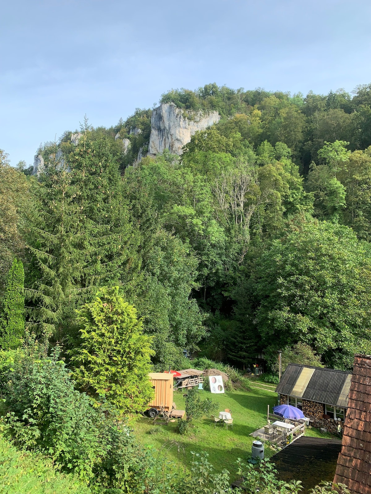 Das Hühnerhaus liegt inmitten des schönen Permagartens, unterhalb eines ehemaligen Klosters, auf dem Katzenhof in Bachhaupten. Gabi und Guido leben hier ihren Traum von Unabhängigkeit und wollen den Hof Nachhaltig und Enkeltauglich ausbauen. So sind zum Beispiel die Wände und die Decke des Hühnerhauses aus den über 200 Jahre alten Dielenbrettern des Haupthauses gemacht worden. Das "Grauwasser" wird im Garten verwendet und die "Trenntoilette" funktioniert ohne Trinkwasserspülung Link zum Reiseführer: https://www.airbnb.de/s/guidebooks?refinement_paths[]=/guidebooks/2355525&s=67&unique_share_id=231982a4-5809-4020-a689-d596360c8a6f