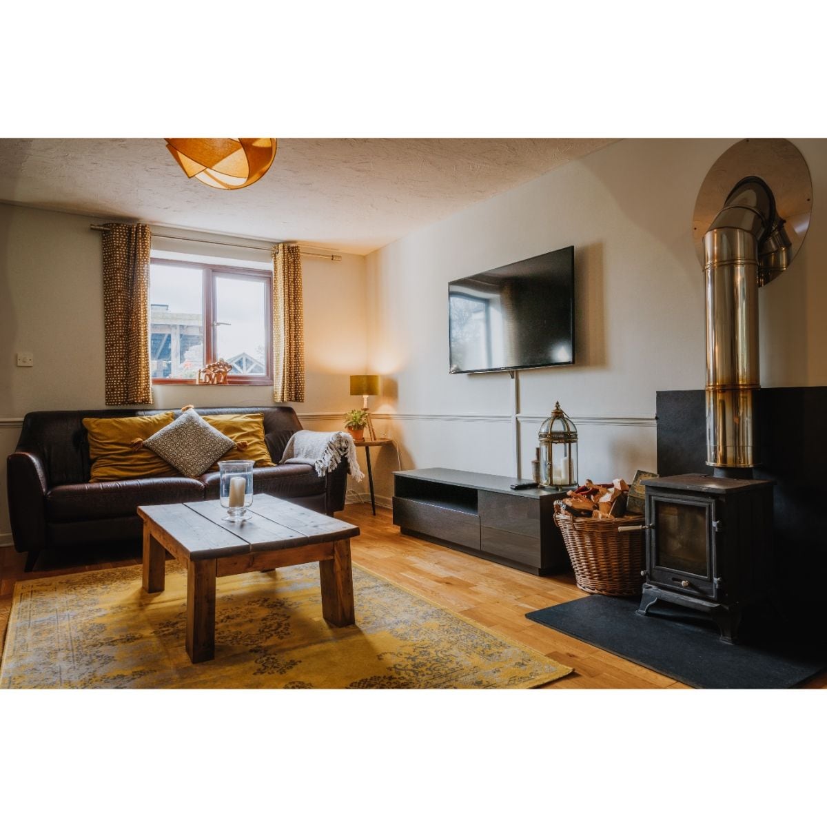This quaint detached barn is full of character and peace (no WIFI). There is an open plan kitchen/living area with a cosy log burner ( logs available at £7 cash a net) and a slate topped breakfast bar. The property has solid oak flooring throughout except for slate in the bathroom so don’t forget your slippers! The kitchen includes an oven, hob, fridge-freezer, toaster, microwave and kettle. The cosy sitting area opens out onto an attractive patio and grassy area. Sorry no pets