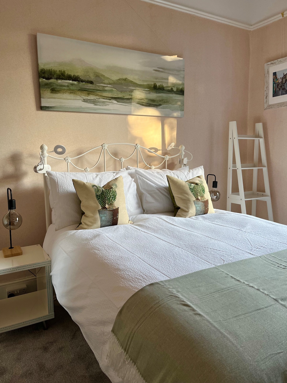A cosy, warm and romantic room for couples, solo adventurers and business travellers. PLEASE NOTE narrow steps lead down to the private front door, these may not be suitable for people with mobility issues to access. There is a wood burning stove installed. The Bathroom is contemporary in style with an electric shower, sink and toilet. There is a small separate area to make tea and coffee with a fridge, toaster and microwave. If not available check our other apartment.