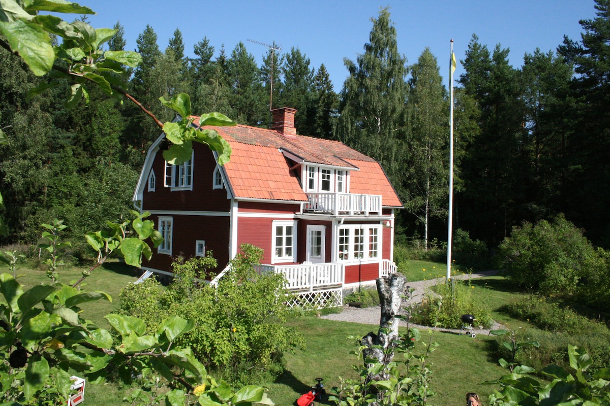 Peaceful idyll in the countryside. The cottage is centrally located on the farm, private and undisturbed. Patio with barbecue, lake view, evening sun. At the back of the cottage, furniture with morning sun. Access to rowing boat and fishing in the lake 200 m away. Small bathplace with jetty by the lake. Berry and mushroom picking around the knot. Nice wood stove in the kitchen. Bathroom around the house knot with dry toilet and shower. 4G coverage About 50 min Stockholm, 60 min Arlanda by car.