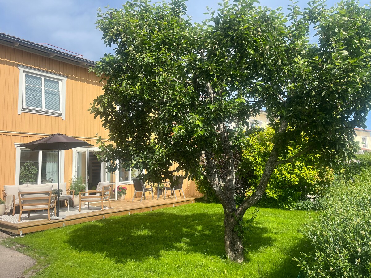 Welcome to our bright and cozy townhouse in Vaxholm – just a short stroll from the sea, nature trails, and a playground. It’s the perfect place for families or friends to slow down and enjoy a relaxing stay in the archipelago. Two bedrooms, six beds, a modern kitchen, and a sunny glassed-in patio with heating. Tennis court and play area just outside the door.