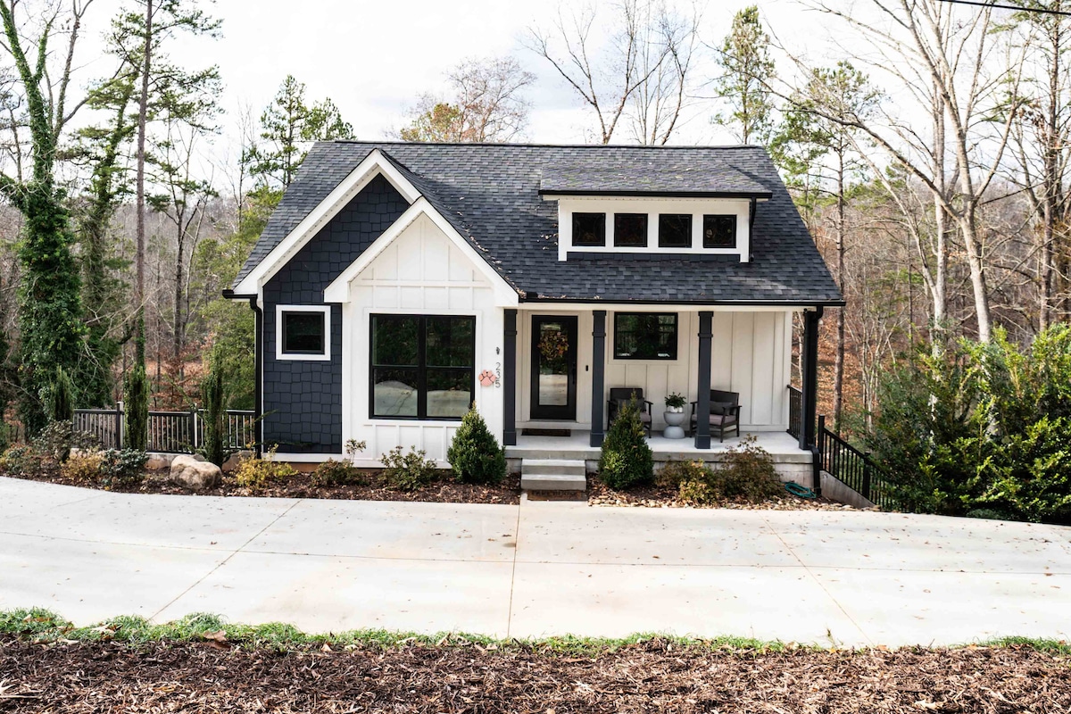 Featured in AJC as one of Georgia's top Airbnb's! We designed our lakefront A-frame cabin to provide the perfect getaway, and we love sharing our home with you. Wake up to sunrises over the lake while you sip coffee on the large deck or drink hot cocoa by the fire pit. Our modern kitchen also begs to be cooked in. In warmer months, enjoy swimming, kayaking, or paddle boarding off the private dock. Whether you want to relax or work on spreadsheets, you'll enjoy a beautiful view while doing so.