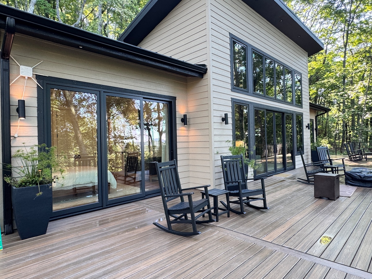This VERY RUSTIC, contemporary home designed by Norwegian architect, Bernardo Rostad, is situated at the foot of the Great Smoky Mountains National Park & adjoins the renowned Cataloochee Ranch. Enjoy spectacular sunrises from the east facing windows perched high above the clouds at 4,700 ft elevation w/ 360 degree views of the Smoky Mountains, located on 25 PRIVATE acres. *See "THE SPACE" description below & confirm that you have read prior to booking request. Reply: I have read "THE SPACE".