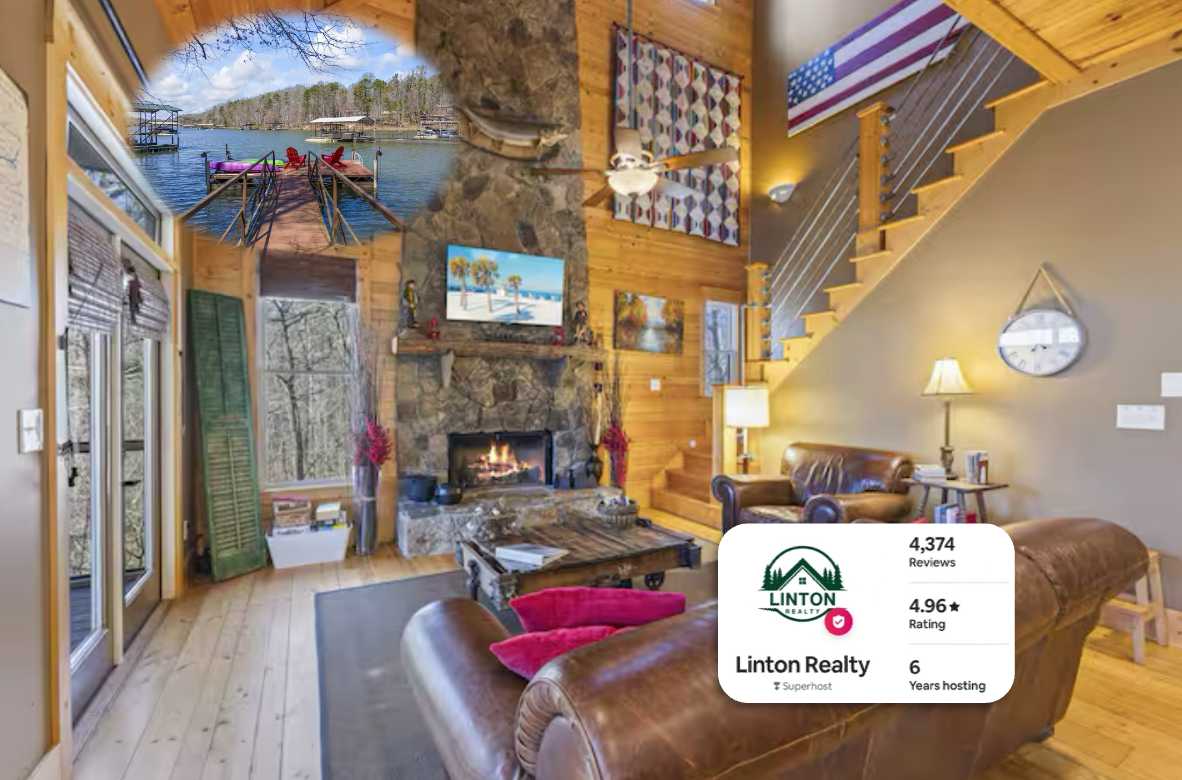 Featured in AJC as one of Georgia's top Airbnb's! We designed our lakefront A-frame cabin to provide the perfect getaway, and we love sharing our home with you. Wake up to sunrises over the lake while you sip coffee on the large deck or drink hot cocoa by the fire pit. Our modern kitchen also begs to be cooked in. In warmer months, enjoy swimming, kayaking, or paddle boarding off the private dock. Whether you want to relax or work on spreadsheets, you'll enjoy a beautiful view while doing so.