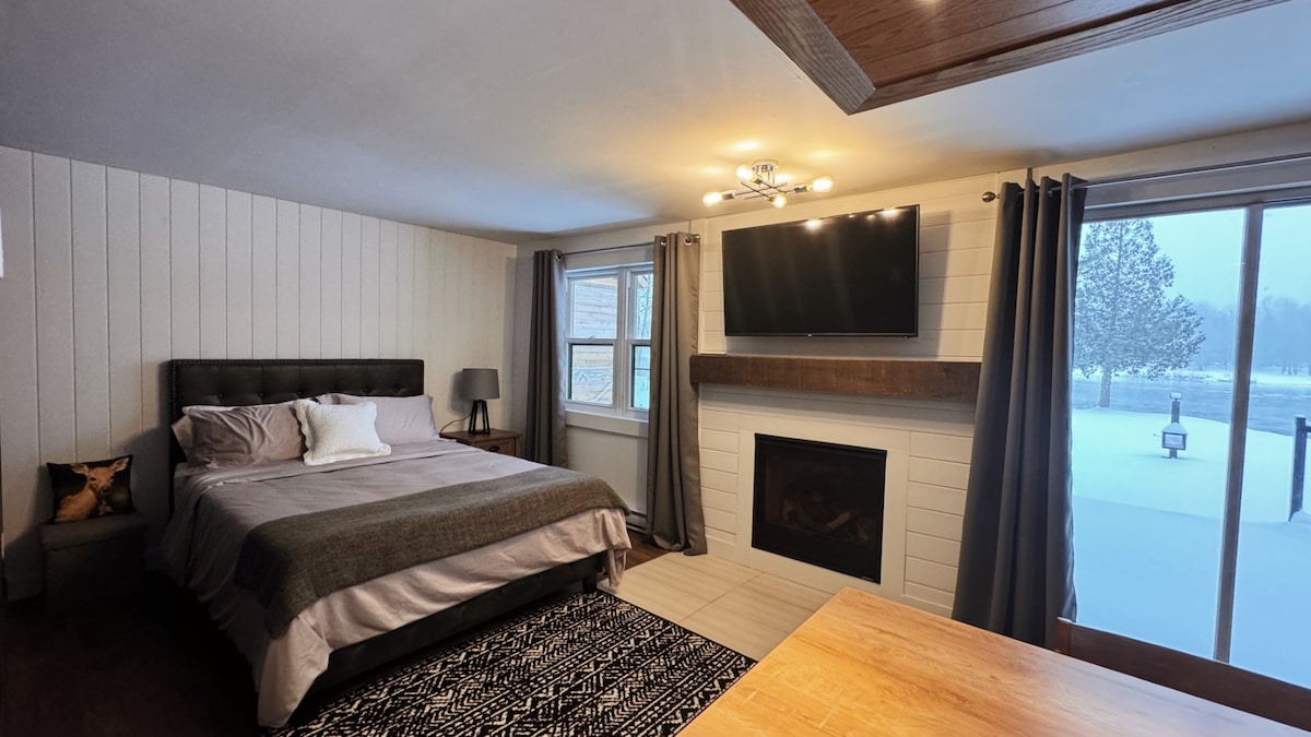 Studio discret romantique rustique avec spa privé, grand bain de 6 pieds, lit King, accès a la rivière, paddle board,situé à coté du centre-ville et centre de congrès, strom spa st -hilaire, marché public, piste cyclable, salle de spectacle Juliette Lassonde, festival agricole, tous a moins de 10-15 minutes. Foyer extérieur terrasse avec table, piscine avec grand Deck chaise soleil. Studio idéal pour relaxer en couple ou pour affaire. Entré privé à l’arrière de la maison avec terrasse privé
