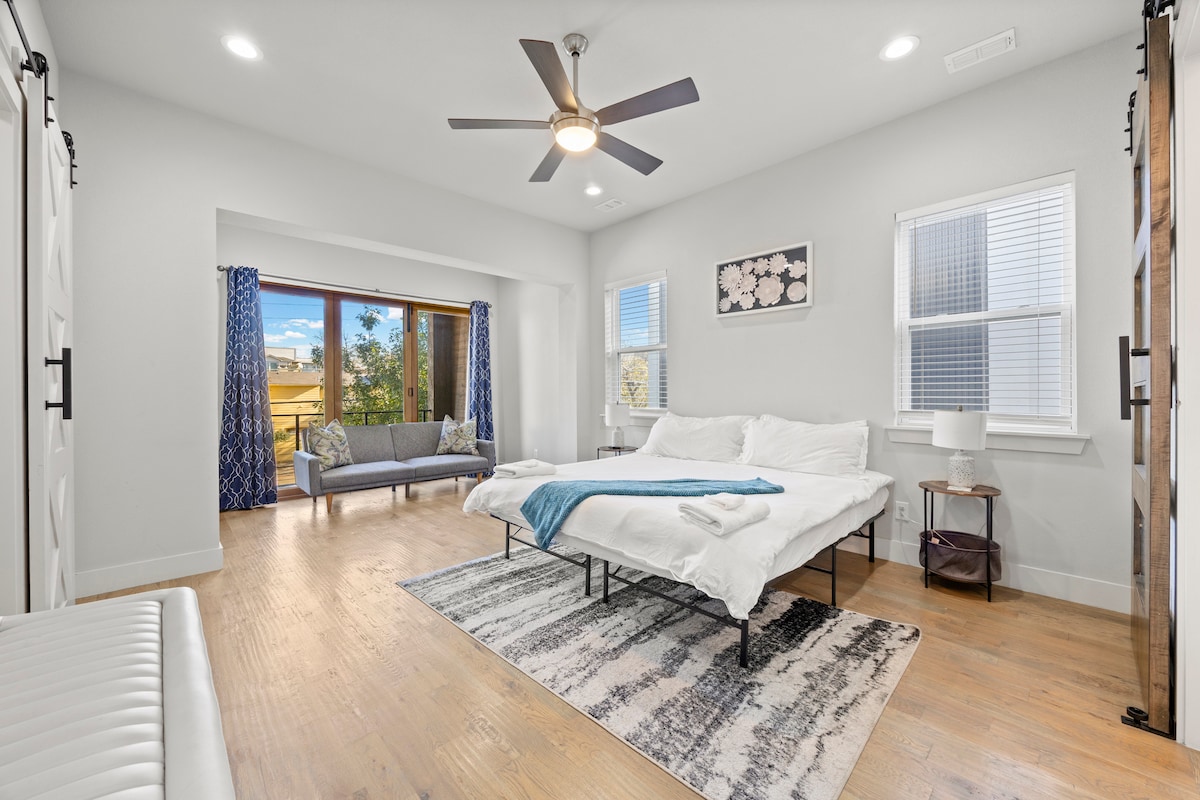 Get the best of urban living in this tucked away luxury townhouse! Enjoy everything from cooking your heart out in the fully equipped luxury kitchen, to kicking back in front of the 86” TV (YouTube TV, Netflix, Disney+), or just simply enjoy a cocktail on the back patio! Luxury linens (1200 thread-count sheets, RH towels, amazing mattresses), well equipped bathrooms, walk-in closet, etc. If business travel is your game, enjoy high speed WiFi and a full desk for your workspace!