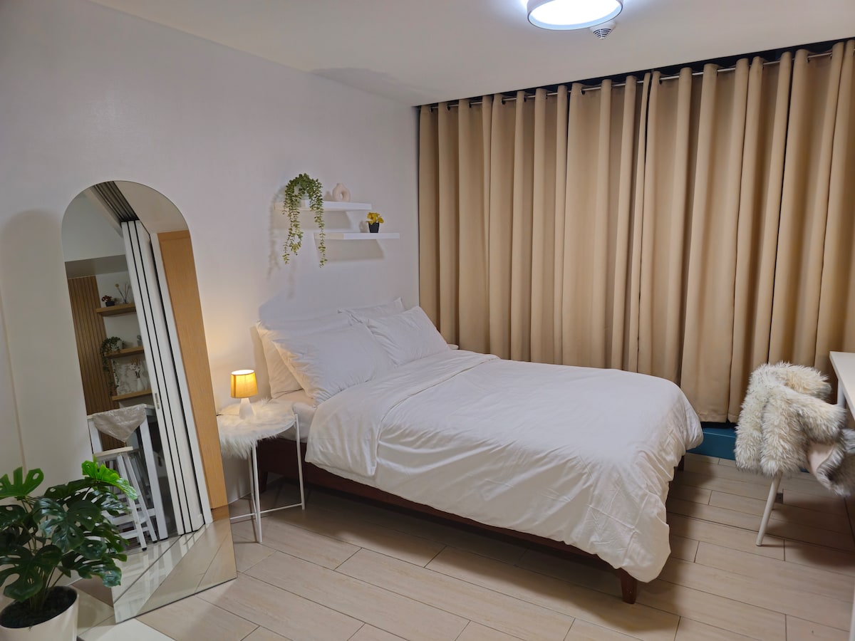Bright and clean bedroom in modern building available for short and long stays. Perfect for holiday makers and business professionals located in the heart of Uptown BGC. It offers 350 Mbps fast speed Internet, Netflix and Disney channels Location: It is across Mitsukoshi mall 4-min walk to Uptown mall 12-min walk from Bonifacio High Street 21 minutes drive to NAIA T3 5-min walk to Grand Hyatt hotel 12-min drive to Glorietta malls This is a non-smoking property.