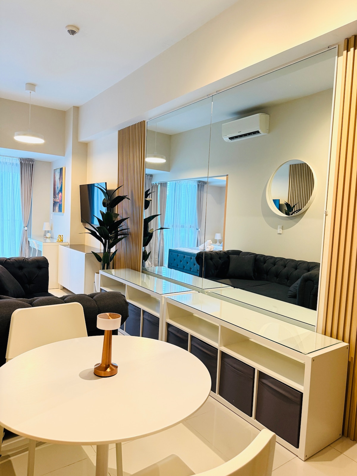 Lovingly and meticulously decorated with a warm Scandi-Industrial theme, the unit is in One Uptown Residence- across from Uptown Mall (with 5 cinemas, a supermarket, food court, restaurants, shops) connected via underground walkway. Nearby are clubs like Xylo (formerly Valkyrie), The Island (formerly Palace Pool Club), and the Grand Hyatt Hotel. Our guests will also have access to the pool on the 6th floor.