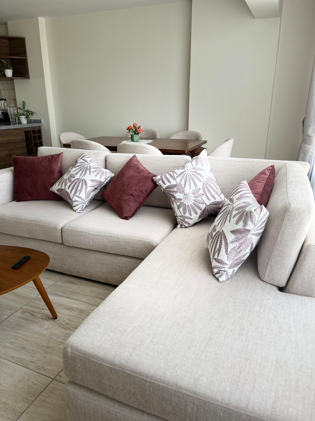 Amplio departamento familiar con acabados de primera muy cómodo y super equipado, excelente ubicación, cerca del aeropuerto J. Chávez, a 20 min. de la Plaza de Armas, a 10 min. de las playas de Lima donde se practica surf. San Miguel es un sitio muy céntrico, con restaurantes, centros comerciales, supermercados y transportes. El apartamento es elegante y moderno completamente amoblado de 100 mt2, 3 habitaciones, 2 baños, cocina americana, comedor, sala y amplia lavandería