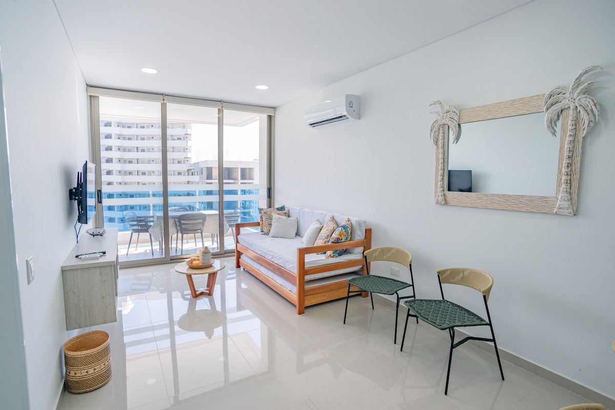 Enjoy an unmatched view of the Caribbean Sea and the exclusive Pozos Colorados Bay from a modern, spacious, bright, and cozy apartment. Relax in a pleasant setting with access to two swimming pools, a jacuzzi, spa, sauna, steam room, bar, restaurant, bakery, and private beach. Stroll along a beautiful pier surrounded by nature, where you can spot iguanas and tropical birds. Wristbands are required to access common areas: $30,000 COP per adult and $10,000 COP per child (up to 7 years old).