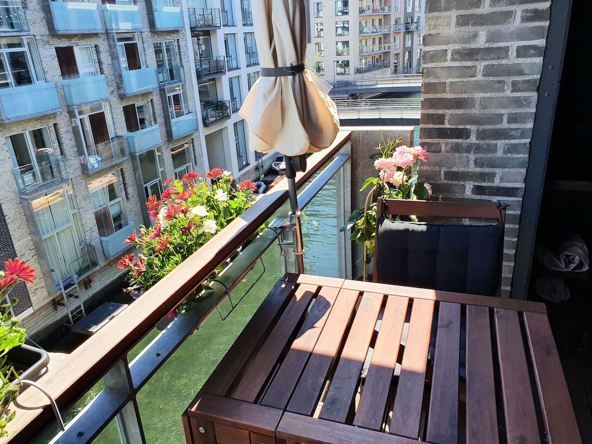 Attractive apartment surrounded by water - 3 metrostops/6 minutes from the absolut center of Copenhagen. Get it alle: light, nature, balconie, one on the roof with a view over Copenhagen and the bridge to Sweden. Take a swim or take the waterbus and go shopping, see the opera, enjoy the people or a beer i Nyhavn