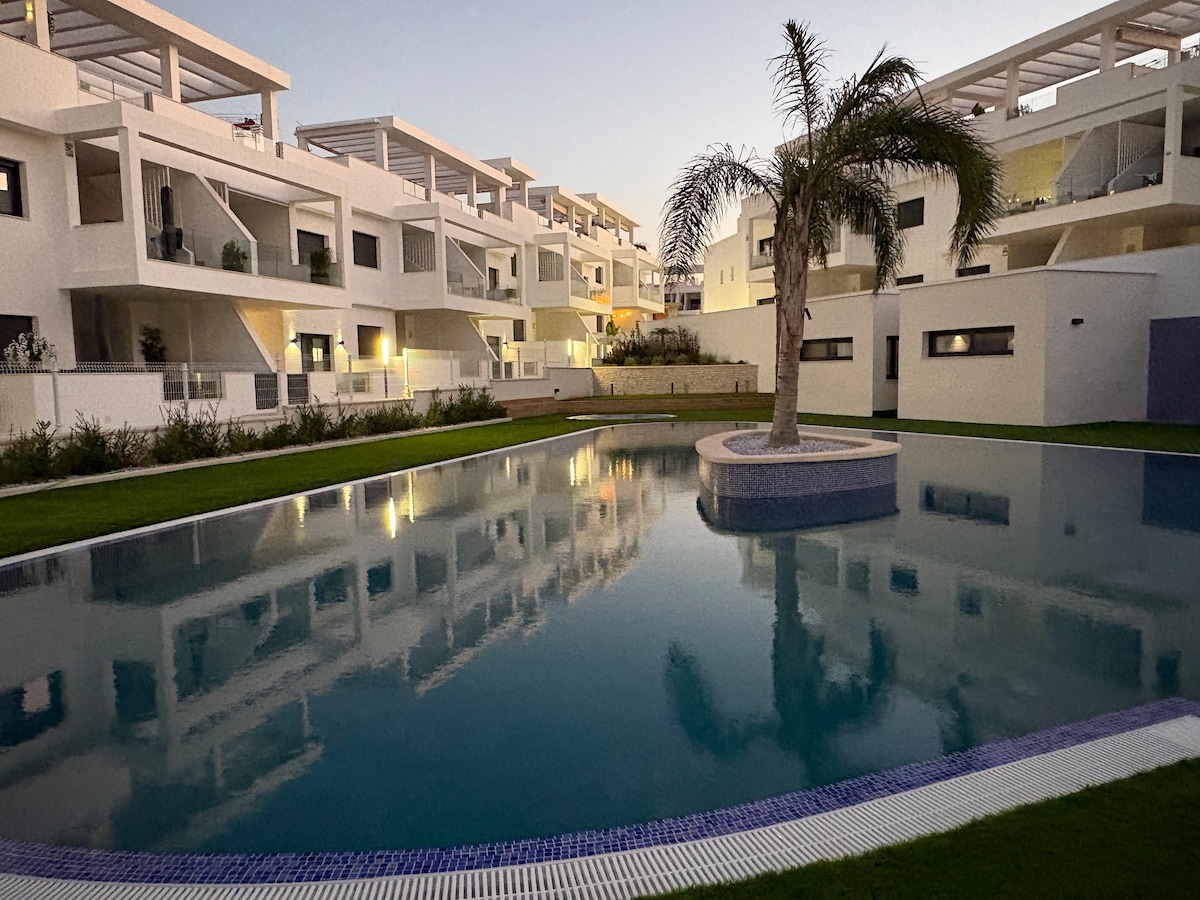 ✨ Brand-new vacation bungalow in Lago Jardín, Los Blacones Torrevieja. 1 bedroom with built-in wardrobe and Smart TV, 1 bathroom with walk-in shower, and living room with Smart TV (1500+ international channels) and A/C. High-speed Wi-Fi, furnished glass-enclosed terrace, and fully equipped kitchen. Community pool, on-site restaurant, only 2,5 km from the beach. Easy self check-in/out with PIN code and full guest support. 🌴 StayOrihuelaCosta #PRP007
