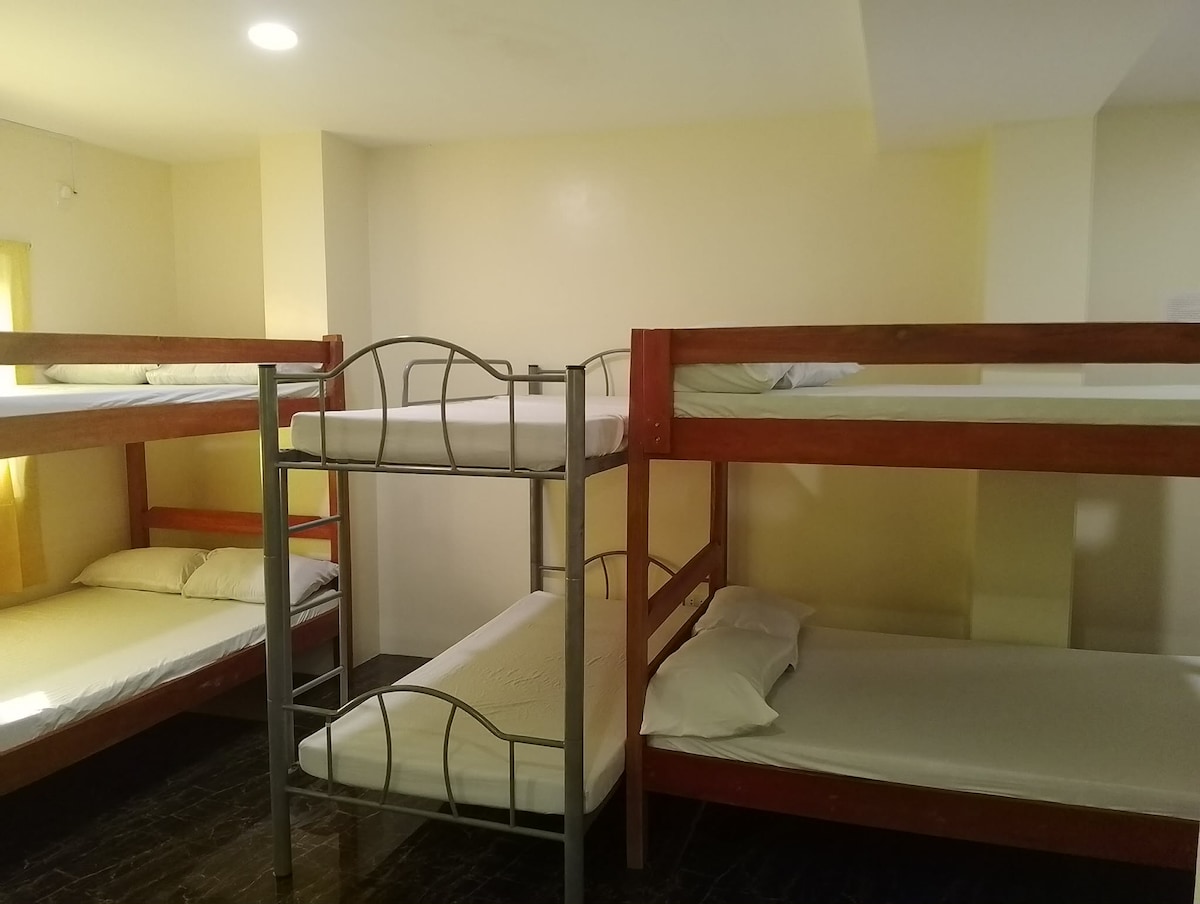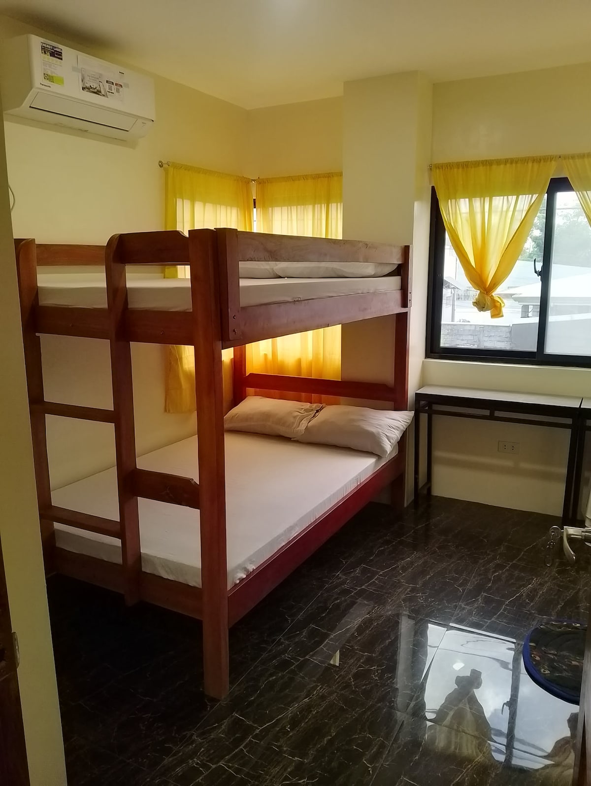 BARKADA ROOM ROOM AMENITIES • Two Double-Sized Bunk Beds • Can Accommodate 8 guests • Private Bathroom with Bidet • Hot and Cold Shower • Complete Bedding Set • Towels Provided • Air-Conditioned Room (Split Type) • In-Room Telephone • Complete Toiletries • Full-Length Mirror PROPERTY AMENITIES • Lounge Area • Pool and Kiddie/Jet Pool • Free Wi-Fi • Free Parking • 24/7 Front Desk • 24/7 CCTV Surveillance • Free Unlimited Drinking Water (Water Dispenser)