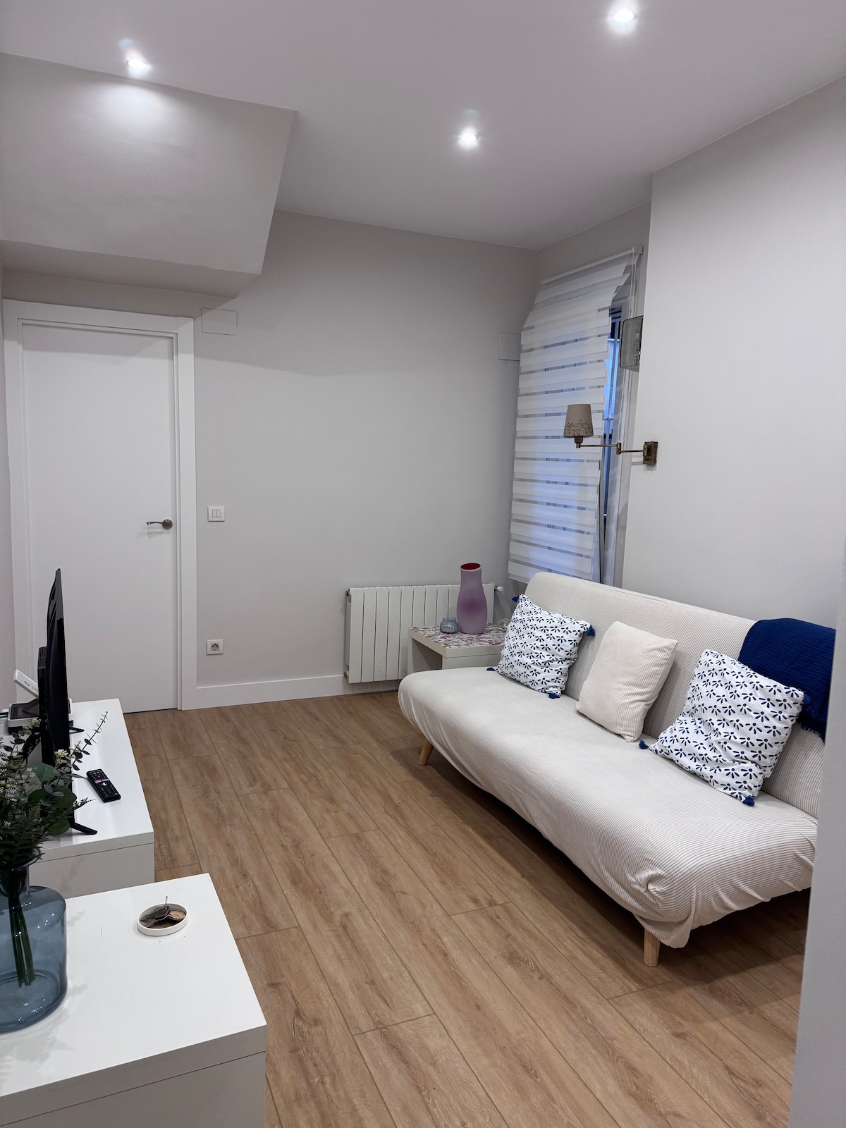 Acogedor apartamento para dos personas. Habitación con cama de 1:50 y amplio vestidor. Sala de estar con zona de comedor, sofá cama y escritorio y SmartTV grande. Baño completo Cocina independiente Entrada independiente por una zona peatonal de árboles. Parking gratuito en calle, Playas a 8 minutos de casa en coche. Con todos los servicios cerca, cinco minutos andando. cafeterías, supermercados... Es zona residencial de chalets sin ruidos. Estarás en un entorno verde y arboles