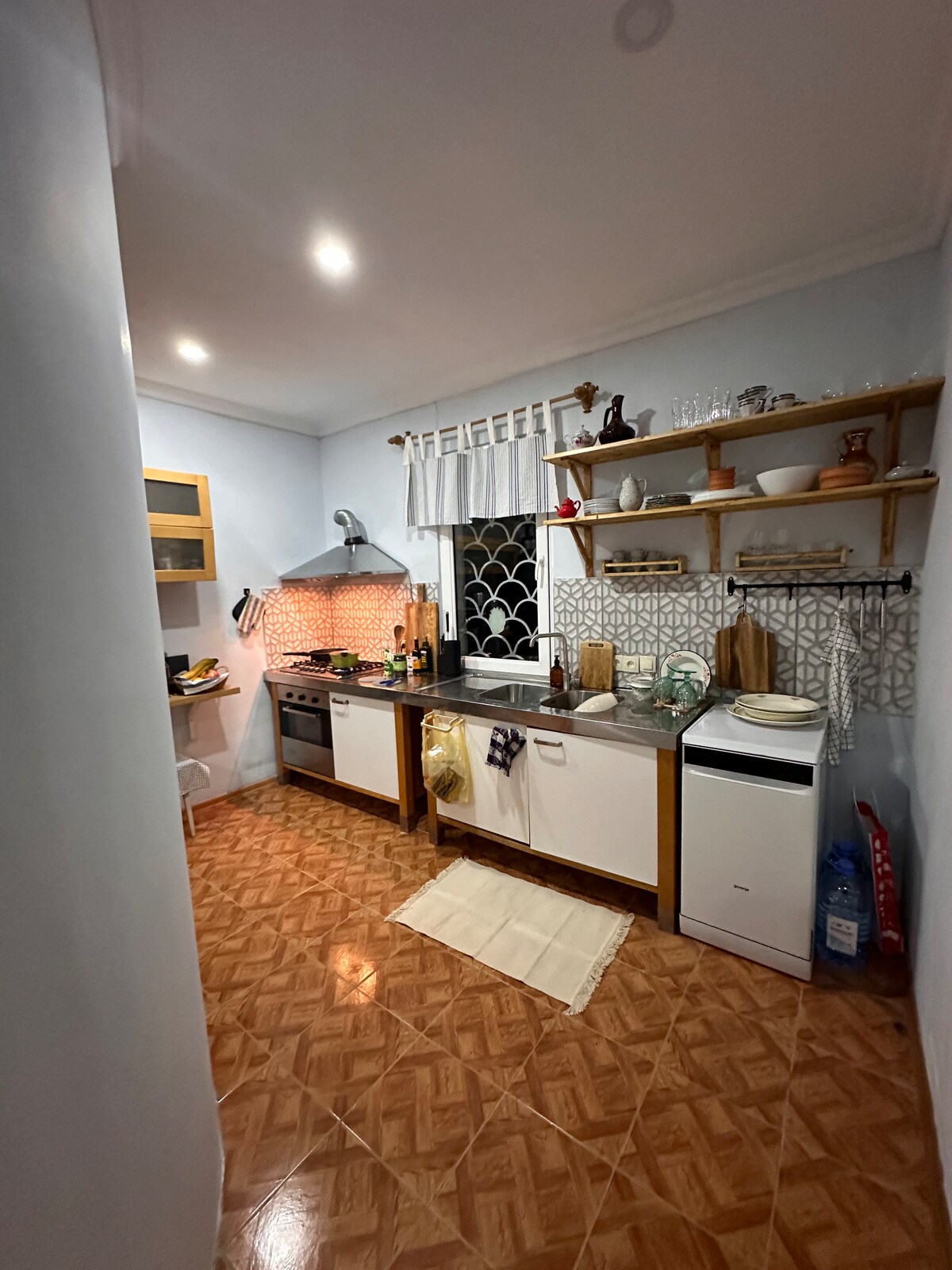 Seaside house for 7 guests. 3 bedrooms and 3 bathrooms/showers. 1. bedroom: 2 single beds. a wardrobe and a bedside table 2. bedroom with a balcony with sea view: a double bed, 2 bedside tables, a wardrobe 3. bedroom: a double bed and a single bed. 2 bedside tables, a dreaser, a clothes rack. there is a washing machine, dishwasher and a dryer.