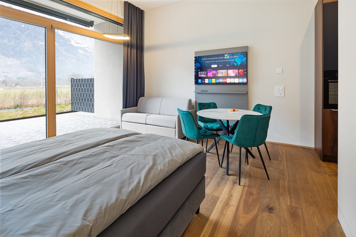 Welcome to Visionary Hospitality in Altdorf, Uri. Our Studio Apt has everything you need for a pleasant Stay: Apartment → Kitchen → Queen Bed / Sofabed → 55" Smart TV → Washer / Dryer → Shower House → Elevator → Train Station / Bus Stop → EV/Car/Van Parking Spaces Important: Some Apt are on Ground Floor and some on 5. Floor. If you have a specific Preference we can assign accordingly based on Availability.