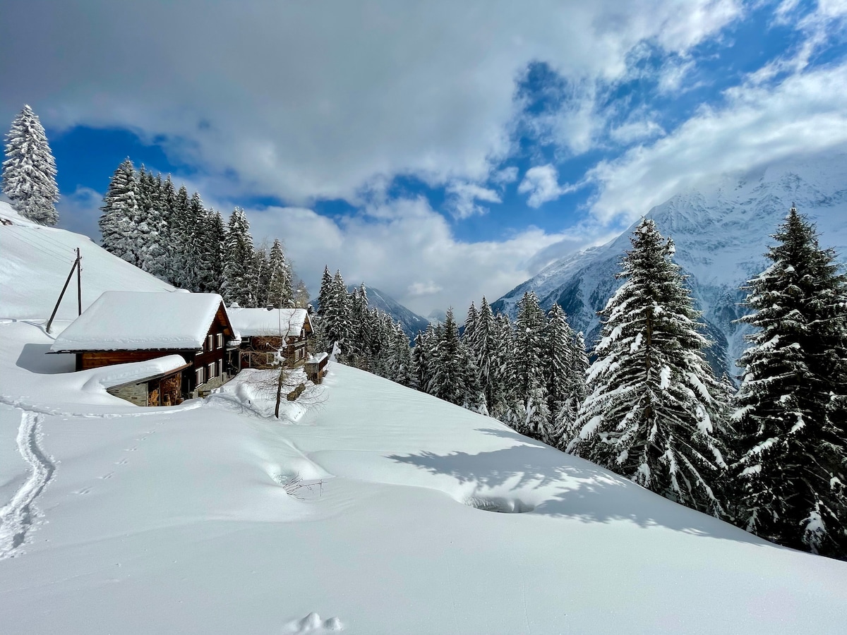 Die umgebaute Sägerei liegt ruhig, umgeben von Wiesen und Wald, mit Blick aufs Bergpanorama, das man vom Sitzplatz Grillstelle oder dem Hotpot aus genießen kann. Perfekt für Wander- und Bergtouren sowie Biker, die diverse Bikewege und eine Downhillstrecke nutzen können. Die Hütte ist per Luftseilbahn(nicht im Mietpreis enthalten), oder mit dem Auto (nur mit Fahrbewilligung, zusätzlich 70.- pro woche) erreichbar. Der Fußmarsch ab der Bergstation dauert etwa 1 Stunde (3,3 km, 320 Höhenmeter).