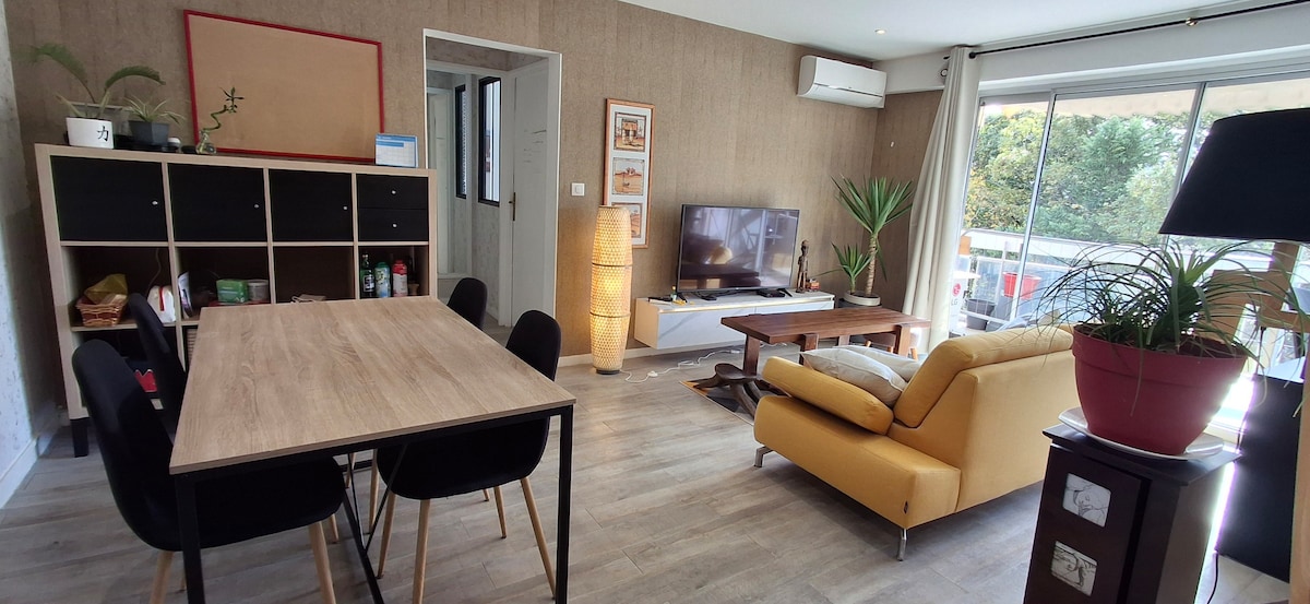 Résidence principale mise à disposition. Appartement atypique sous les toits avec poutres apparentes traversant T3 de 55m², salon avec cuisine ouverte de 30m² lumineux de deux Velux avec volets. Il dispose de deux chambres, idéal pour se ressourcer entre océan et montagne. Parfait pour les amoureux de nature et de tranquillité. Emplacement à 20 minutes des plages et des montagnes. J'essaie de rendre votre séjour le plus agréable, n'hésitez pas pour toutes questions.