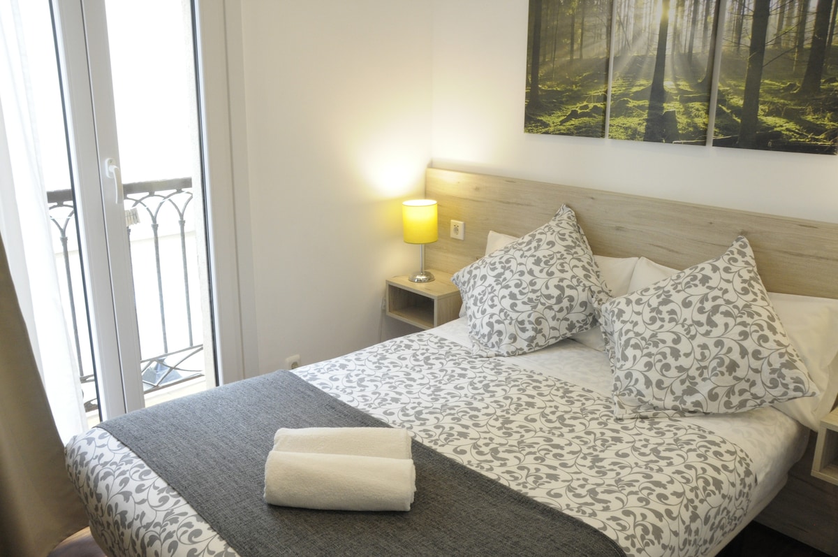 This cozy 15m² room will be ideal to enjoy a well-deserved break from the city. It has a comfortable 150 cm double bed and a private bathroom, to enjoy alone or as a couple. All rooms are equipped with a wardrobe, mini-fridge and a small desk, as well as a coffee maker, infusions and complimentary water. Equipped with everything you need to make you feel at home while visiting San Sebastián.