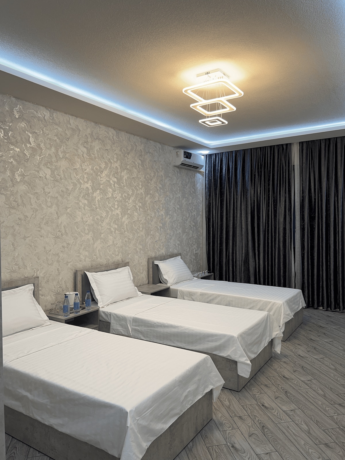 • Casa Uzbek — просторный трёхэтажный дом с большим зелёным передним двором, отдельной сауной-комнатой, террасой и крытой парковкой. • Рассчитан до 9 гостей: 4 спальни, 2 санузла, 2 гостиные, полноценная кухня и обеденная зона. • Во дворе: газон, гамак/шезлонги, место для вечерних посиделок под навесом. • Идеально для семей и компаний: много пространства, светлые комнаты, спокойный район.