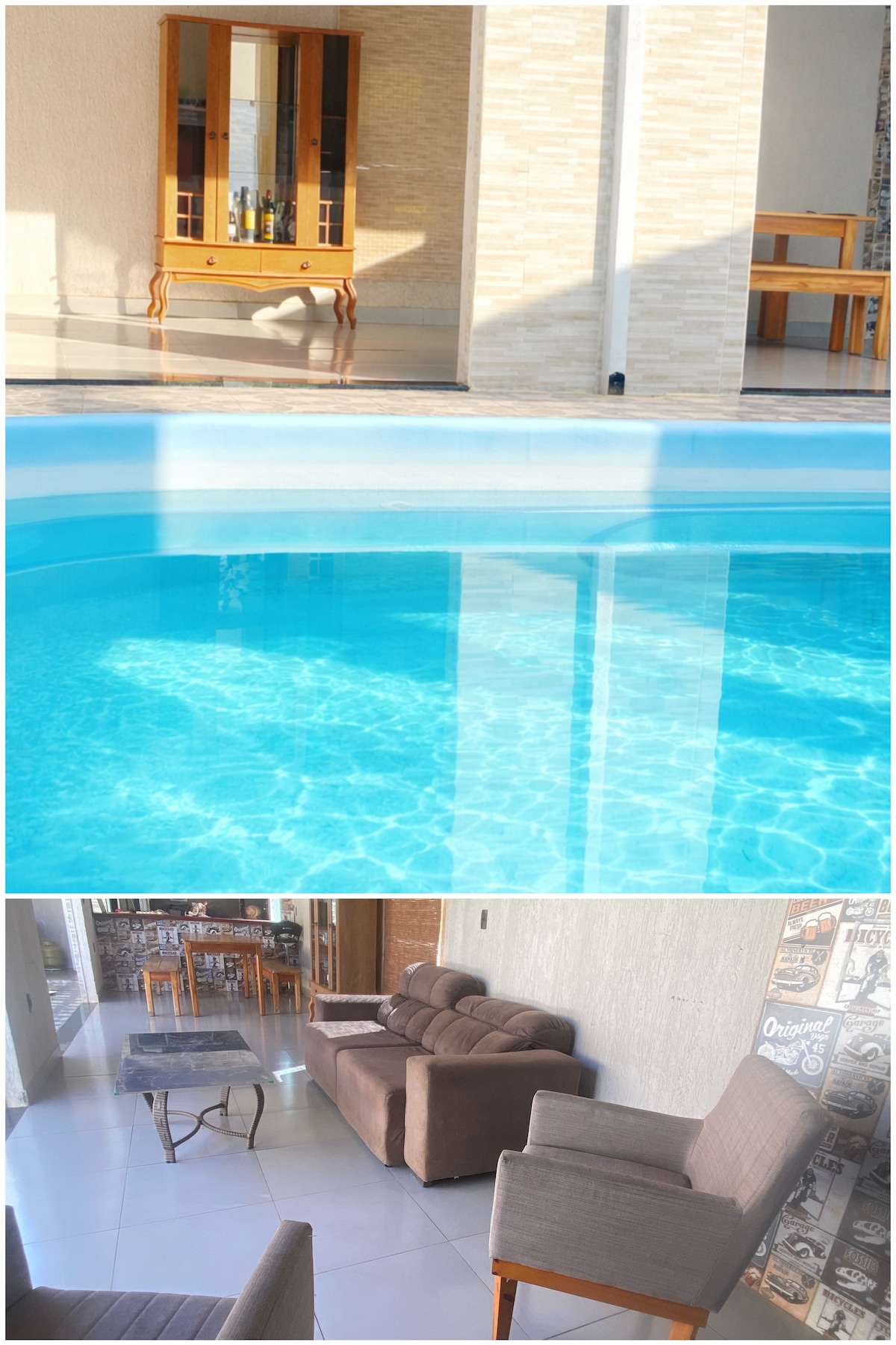 Há apenas 12 km de Uruaçu-Go, sendo somente 400 metros de estrada de chão. O espaço conta com: Três quartos climatizados Cozinha ampla, equipada com freezer, geladeira, fogão convencional e fogão industrial. Área de lazer completa, com piscina, perfeita para descanso e diversão. Ambiente confortável, funcional e preparado para recebê-los com comodidade.