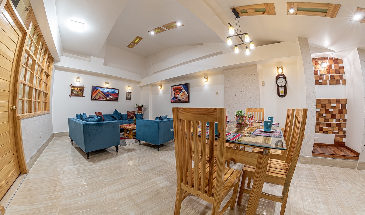 Stay in this elegant and centrally located apartment on the second floor . Just steps from markets, restaurants, shops, the Urubamba train station, and bus terminal, etc. It features 2 bedrooms, living room, dining area, kitchen, bathroom with jacuzzi tub, and laundry. Perfect for short or long stays, with high-speed WiFi ideal for digital nomads. If you need transfers, tours, and personalized experiences do not hesitate to contact us.
