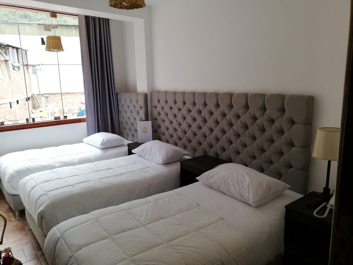 HOTEL RAICES MACHUPICCHU pone asu disposicion habitaciones panoramicas y encantadoras con vistas a las montañas y rio disfruta de sus habitaciones modernas con todos los servicios incluidos. cuenta cada habitacion con agua caliente,un escritorio,internet wifi en la habitacion y areas comunes.se sirve un desayuno americano gratuito desde 5:30 am hasta 9:00 am. contamos con areas libres y Disfruta del fácil acceso a tiendas y restaurantes populares desde este encantador espacio para quedarte.