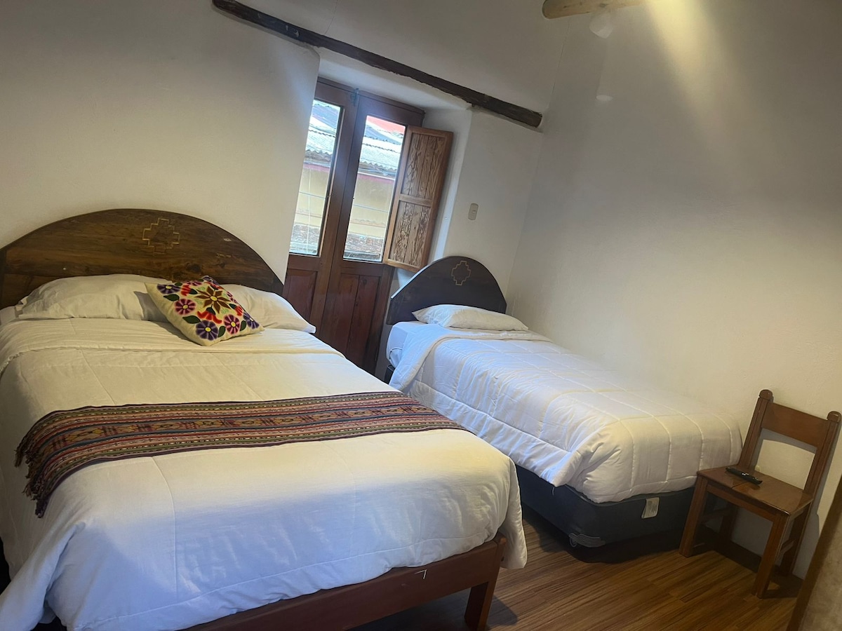 Quédate en este lugar único ubicado a tres cuadras de la plaza principal, con hermosas vistas al patio y a las montañas. Un pequeño hotel con alma de hogar, unicamente contamos con 6 habitaciones, cada una de ellas tiene una cama matrimonial, excelente para compartir en familia o en pareja. Muy cerca a los centros arqueológicos y a 15 minutos de la estación de tren. Anido hotel, incluye habitaciones con mucha iluminación, vistas hermosas, y además incluimos el desayuno