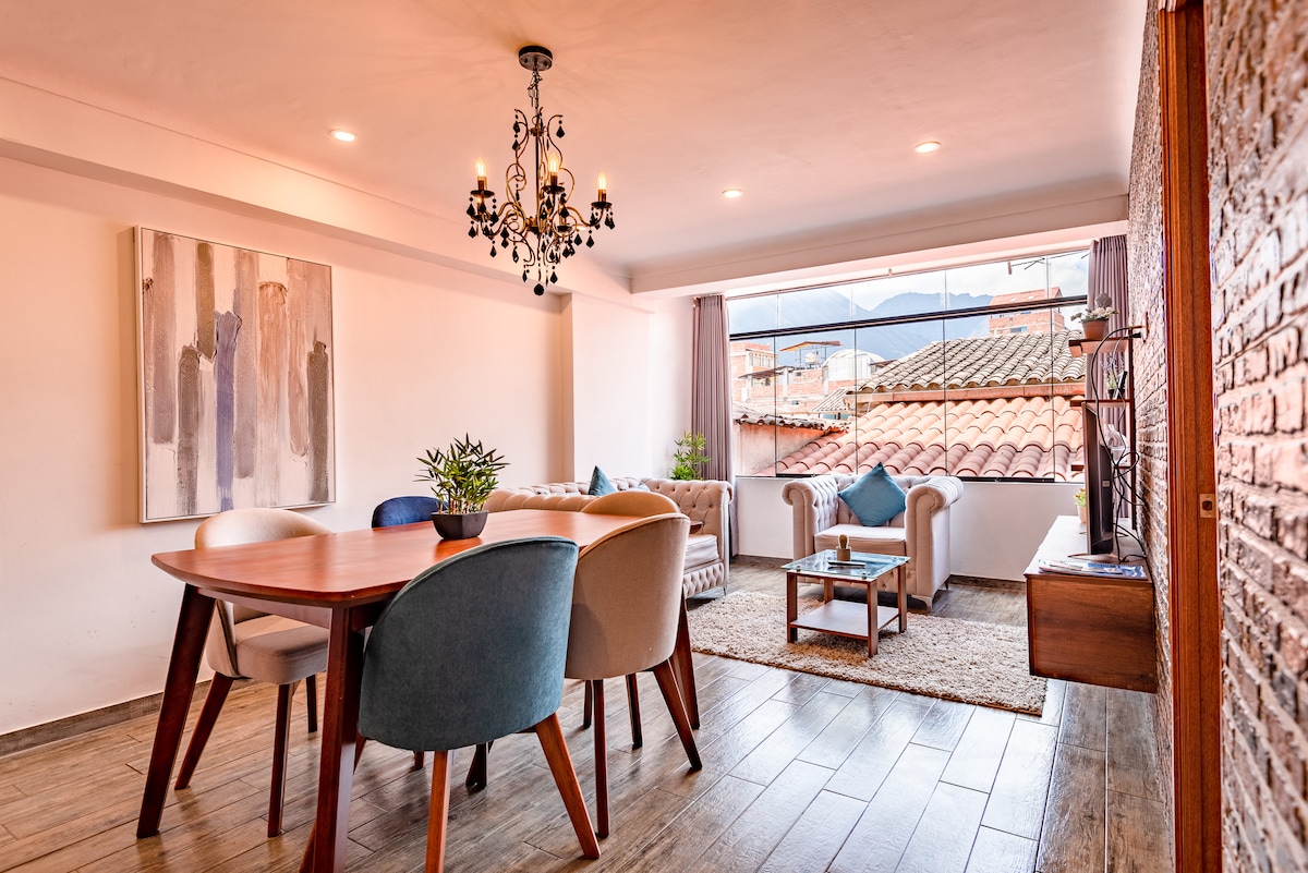 Stay in this elegant, fully central apartment on the 4th floor with an unbeatable view and close to everything—markets, restaurants, shops, train station, and bus terminal. It offers 2 bedrooms, living and dining area, kitchen, bathroom with jacuzzi tub, and laundry. Perfect for short or long stays, with high-speed WiFi ideal for digital nomads. If you need transfers, tours, or personalized experiences, feel free to contact us.
