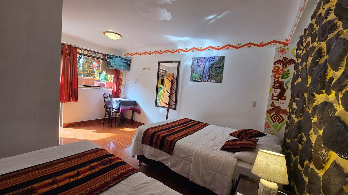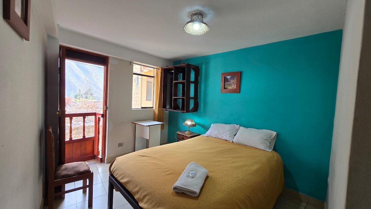 Quiet and well-located hotel in Ollantaytambo, just a few minutes from the Main Square and very close to the train station, with vehicle access right to the door. The interior, peaceful room with a double bed (1.35 m), private bathroom, and 24/7 hot water. Wi-Fi, cable TV, heater, and kettle, towels, shampoo, and soap. We offer a beautiful terrace with great views, shared kitchen/dining area for guest use. Breakfast included (box breakfast available for early departures). Ideal for 1–2 guests.